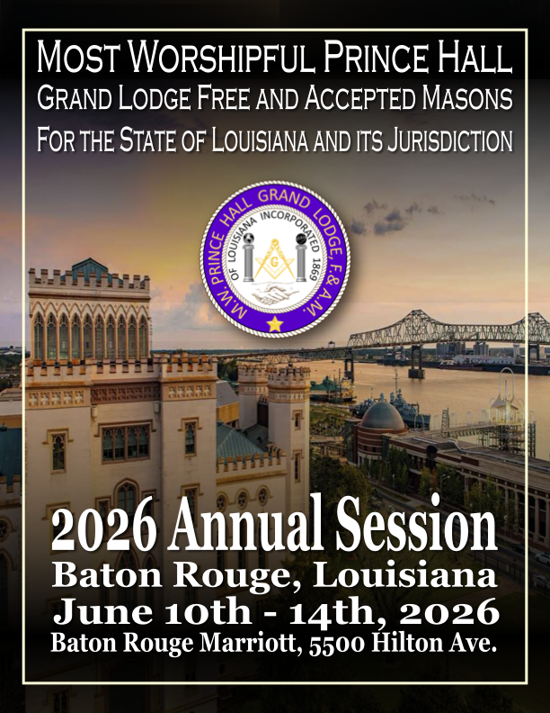 It is my honor to hereby call the Most Worshipful Prince Hall Grand Lodge, Free and Accepted Masons for the State of Louisiana, to convene its 2026 Annual Communication in the city of Baton Rouge, Louisiana, from June 10–14, 2026.